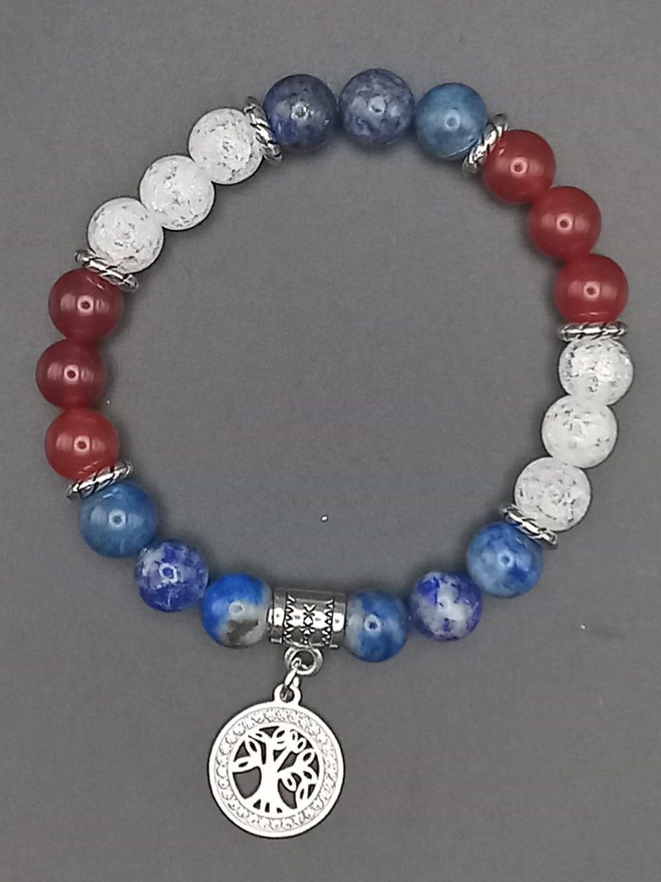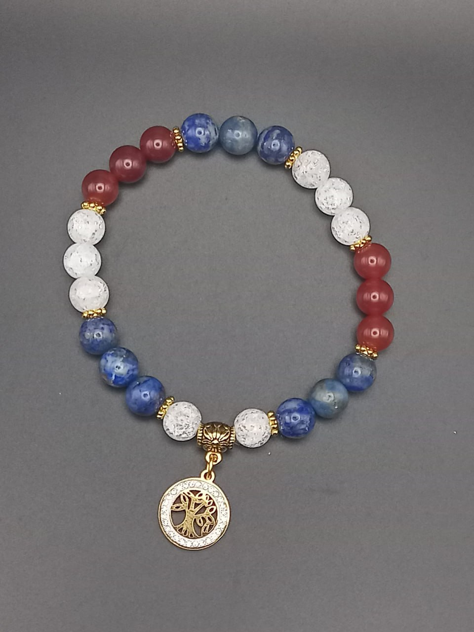 Composé de lapis lazuli, cornaline et cristal de roche.